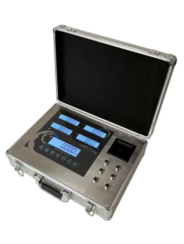This industrial-grade digital indicator is engineered for dynamic and static weighing applications. It accepts input from up to 16 load cells and supports four independent platforms. With a built-in thermal printer, RS232 interface, and optional Bluetooth/WiFi, it is ideal for field use. The device is housed in a shock-resistant aluminum suitcase and features a rechargeable battery with 40-hour runtime. It supports both kg and lb units and includes multiple software modes for various axle configurations.
